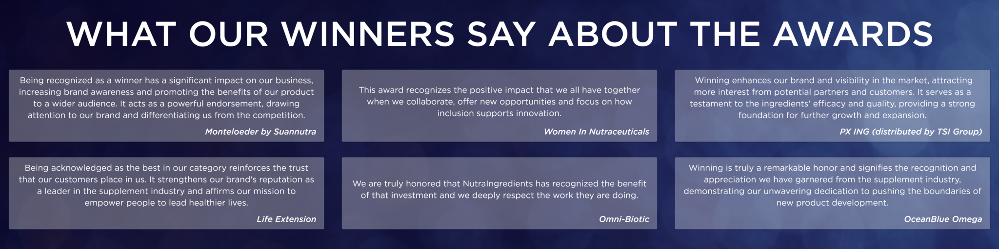 The NutraIngredients USA Awards celebrate the innovators, trailblazers, and changemakers shaping the future of the nutrition industry. Entering is more than submitting an application. It is your opportunity to put your achievements on a global stage and be recognized by the industry that matters most.